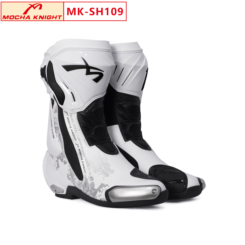 MK-SH109 Motorcycle Riding Boots Professional Racing Boots Anti-fall Durable and Skid-resistant Motorcycle Shoes Racing BootsMen's White/Silver Dragon)