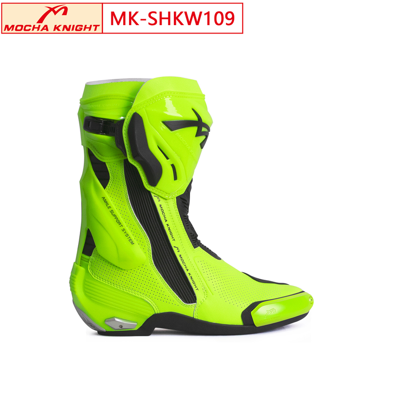 MK-SHKW109 Motorcycle Riding Boots Professional Racing Boots Anti-fall Durable and Skid-resistant Motorcycle Shoes Racing BootsWomen's (Fluorescent green)