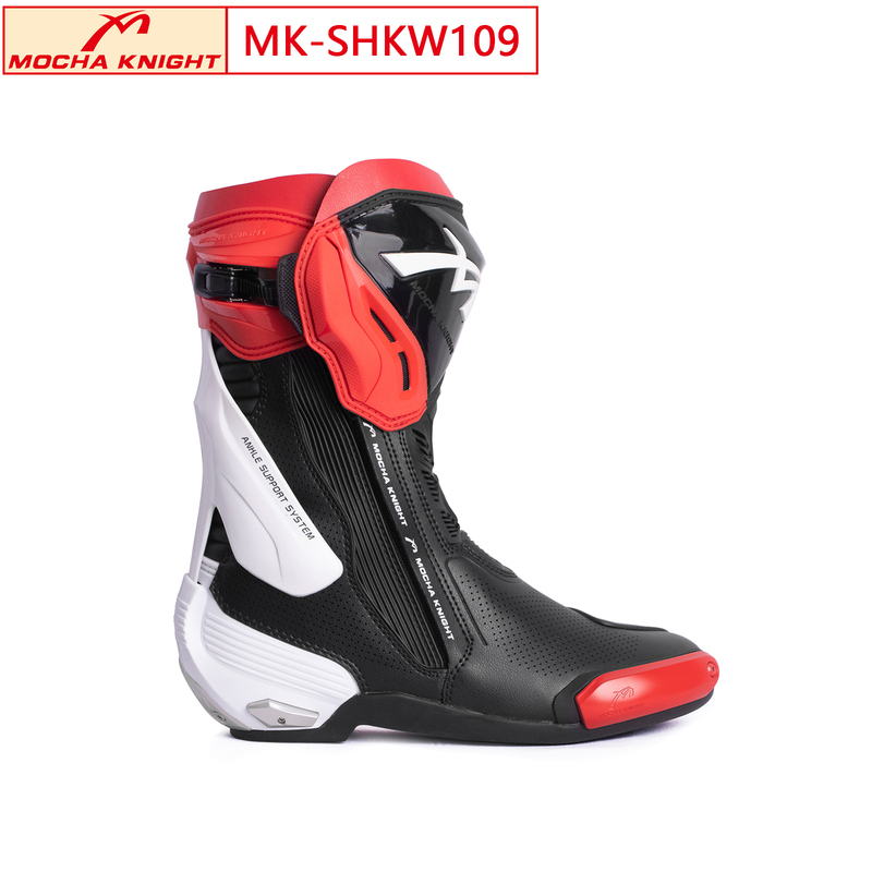 MK-SHKW109 Motorcycle Riding Boots Professional Racing Boots Anti-fall Durable and Skid-resistant Motorcycle Shoes Racing BootsWomen's (black/white/red)