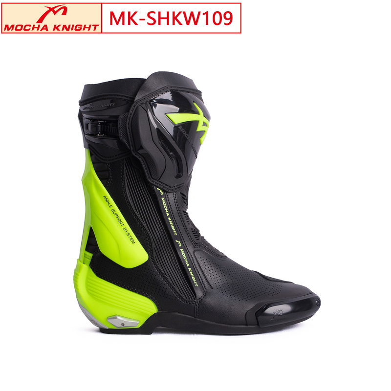 MK-SHKW109 Motorcycle Riding Boots Professional Racing Boots Anti-fall Durable and Skid-resistant Motorcycle Shoes Racing BootsWomen's (black/green)