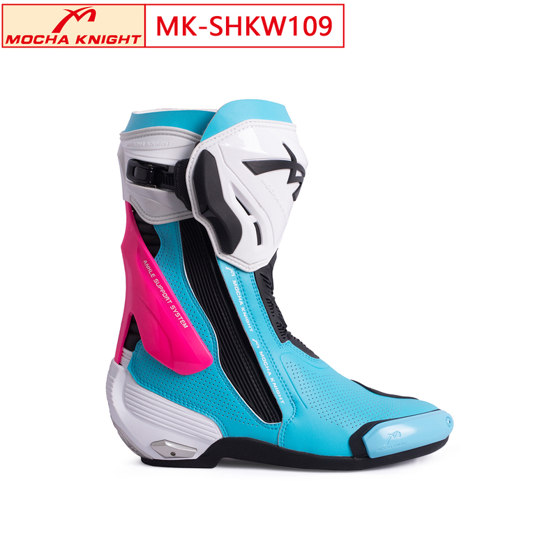 MK-SHKW109 Motorcycle Riding Boots Professional Racing Boots Anti-fall Durable and Skid-resistant Motorcycle Shoes Racing BootsWomen's (blue/white/pink)